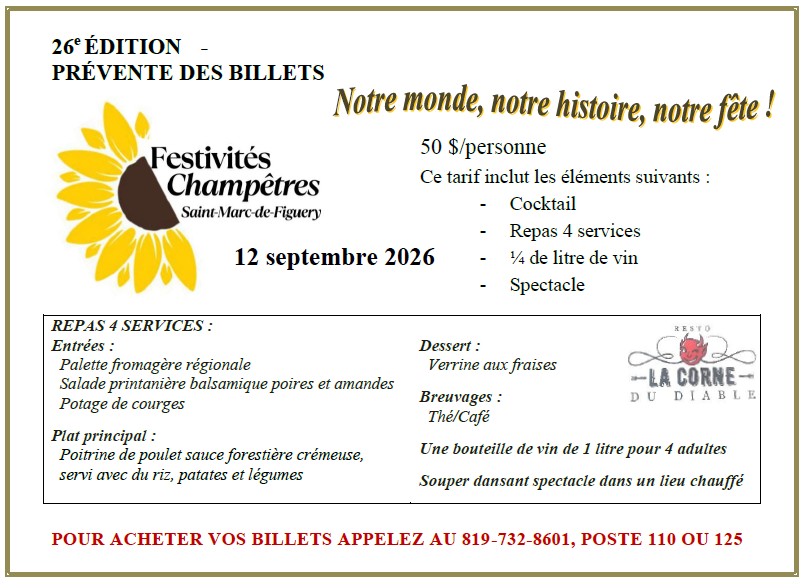 L'événement les Festivités Champêtres de Saint-Marc-de-Figuery en est un de fin d'été. Il permet à tous de s'amuser par l'intermédiaire de concours, compétitions et jeux, le tout dans une ambiance champêtres. C'est une occasion de découvrir les trésors cachés locaux, territoriaux et régionaux tant dans l'offre des activités que dans le service du souper.