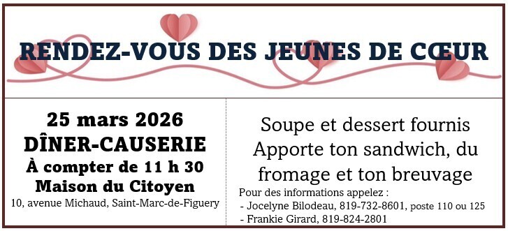 Un dîner-causerie se tiendra, le 25 mars 2026, dans les locaux de la Maison du Citoyen située au 10, avenue Michaud.